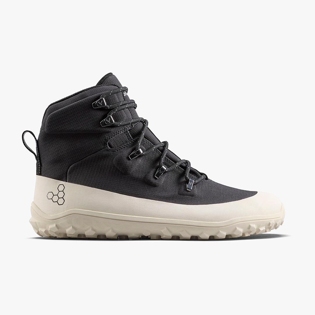 Lerne den neuen und verbesserten Tracker Textile AT kennen, unseren Outdoor-Klassiker, der jetzt eine definitive vegane* Aufwertung mit 100% recycelten, tierfreien Materialien erhalten hat. In den neuen Fußstapfen des Tracker Leather bietet die Textile-Version eine wasserdichte Membran, innovative Designdetails und eine Konstruktion, die diesen Barfuß-Wanderstiefel auf ein neues Level hebt. | Vivobarefoot Tracker Textile AT Herren, Obsidian-Weiß, Größe 49
